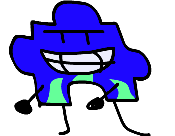 Temmiemania, a blue jigsaw puzzle piece character with a wide grin and green accents, performs a lively dance.