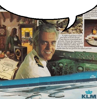 a man in a pilot 's uniform is smiling in an advertisement for klm airlines