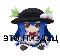 Tenshi Touhou Fumo doll spins upside down with the Russian caption 'это пиздец' (this is fucked up) overlaid.
