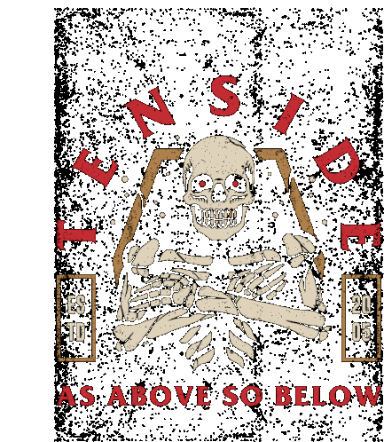 Dark grunge sticker featuring a skeleton with crossed arms, red eyes, and "TENSIDE AS ABOVE SO BELOW" text.