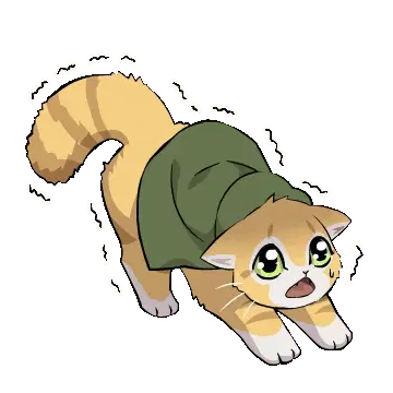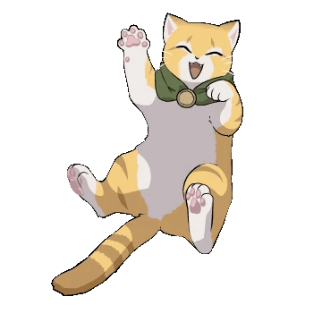 Teo, the orange cat from Dungeon Farmer, happily jumps with paws raised, a joyful and cute animated sticker.