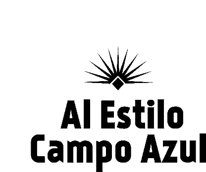 Animated logo for Al Estilo Campo Azul Tequila, featuring a sun emblem and text changing colors.