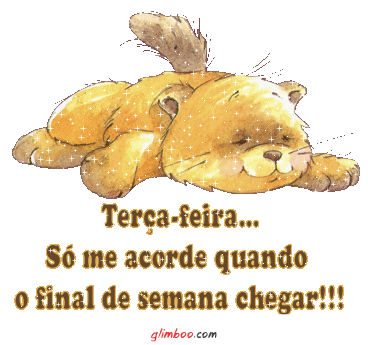 Animated sticker of a cat with Portuguese text: 'Tuesday, only wake me up when the weekend arrives.'