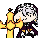 Teri Teri from Honkai Impact 3rd, a cute animated sticker showing her happily holding a yellow cross.