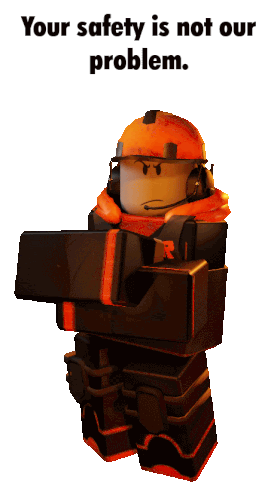 a roblox character holding a gun with the text " your safety is not our problem "