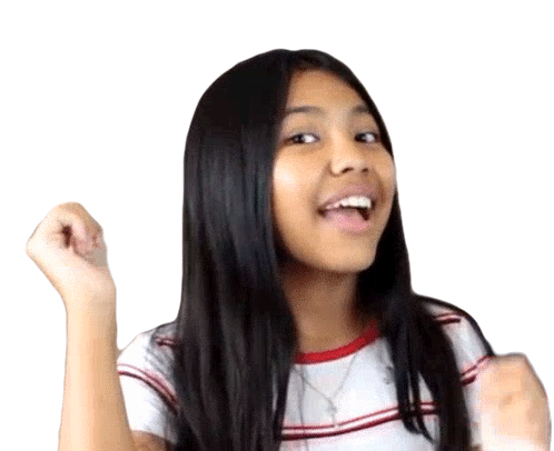Keira Charma smiles brightly and gives two enthusiastic thumbs up, showing approval and happiness.