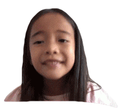 Zara Cute, a young girl with long dark hair, smiles sweetly and then breaks into a joyful laugh.