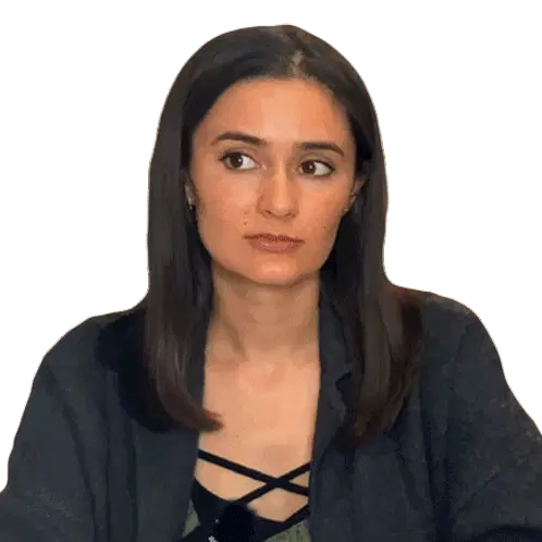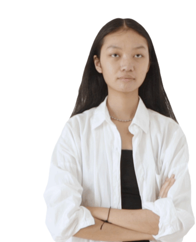 A young woman with long dark hair, wearing a white shirt, crosses her arms and gives a dismissive 'whatever' look, perfect for expressing indifference during Jakarta Fashion Week.