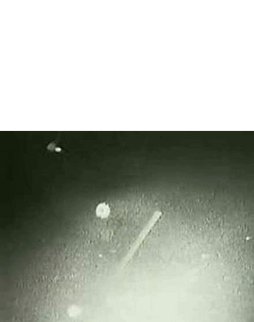 A grainy, black and white video showing a mysterious incident in space with a glowing tether and unidentified objects.