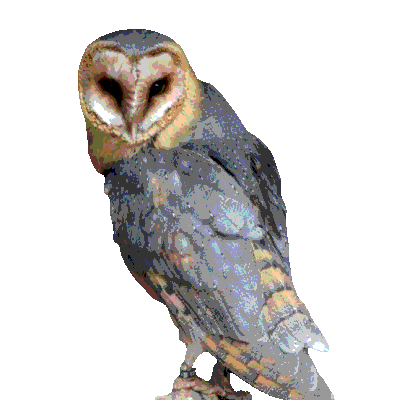 An intense barn owl stares directly, displaying the Spanish phrase 'Te estoy viendo' (I am watching you). A watchful and humorous sticker.