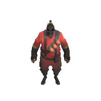 TF2 Pyro character in red suit with gas mask and backpack, standing still.