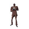 TF2 Spy character in a brown suit performing a pixelated crab dance animation.