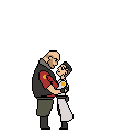 Pixel art animation of TF2 Heavy lifting Medic, showing affection with a small heart.