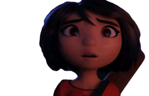 Yi from Abominable looks worried, then expresses relief with a 'Thank God' sentiment.