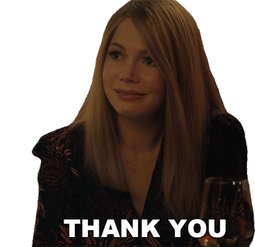 Anne Weying, portrayed by Michelle Williams, smiles warmly and expresses gratitude with a clear 'Thank You' caption.