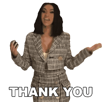 Cardi B, the famous rapper, expresses her gratitude with an open-arm gesture and a clear 'Thank You' message.