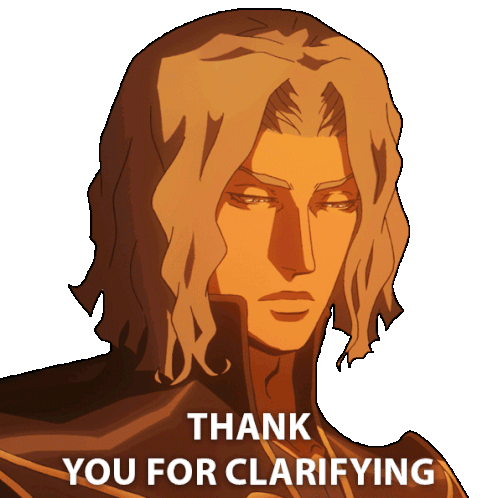 Hector from Castlevania with a thoughtful expression, saying 'Thank you for clarifying.'