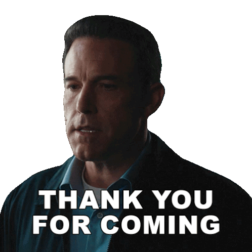 Ben Affleck as Christian Wolff says 'Thank You For Coming' in this animated sticker, perfect for expressing gratitude.