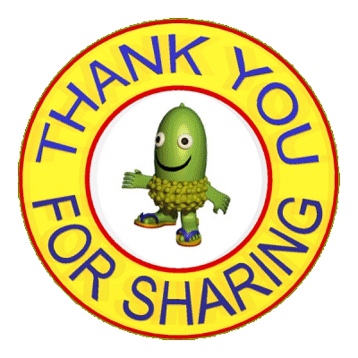 A cheerful 3D animated acorn character dances within a spinning 'Thank You For Sharing' circular sticker.