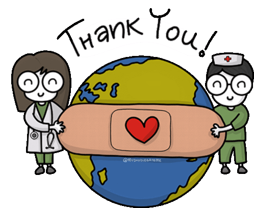 A heartfelt thank you to health workers, showing global support and care for the world.
