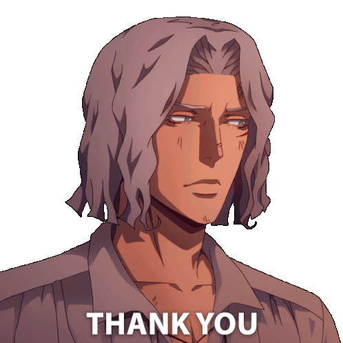 Hector from Castlevania expresses gratitude with a clear "Thank You" message, conveying appreciation.