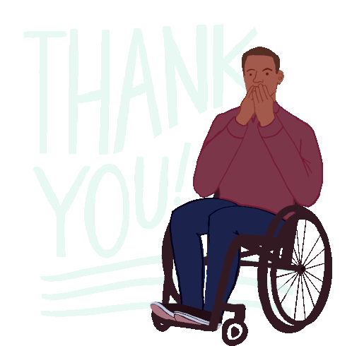Tasian, a happy Black man in a wheelchair, expresses gratitude with hearts and a 'Thank You!' message.
