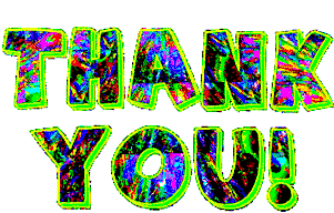 A vibrant animated sticker displaying the words 'THANK YOU!' in colorful, textured letters with a dynamic border.