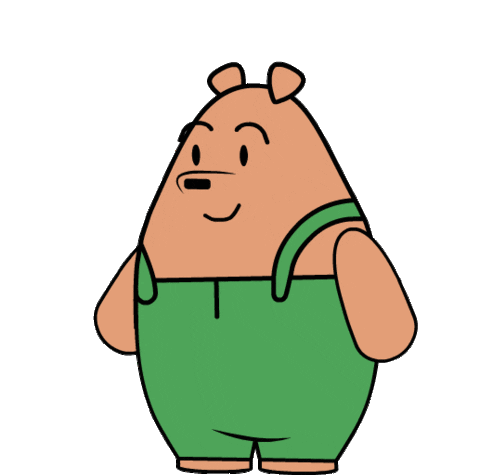 Pants Bear, a cute animated bear in green overalls, happily says 'THANK YOU!' with a big smile.
