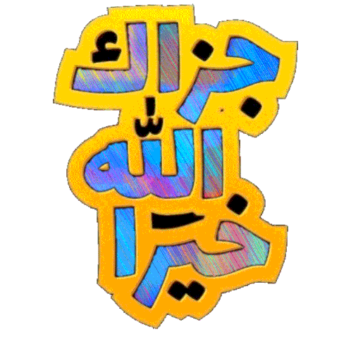 Animated sticker featuring the Arabic calligraphy 'Jazak Allah Khairan' which means 'May Allah reward you with goodness'.