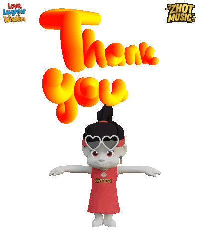 a cartoon girl wearing a headband that says phoenix stands in front of a thank you sign