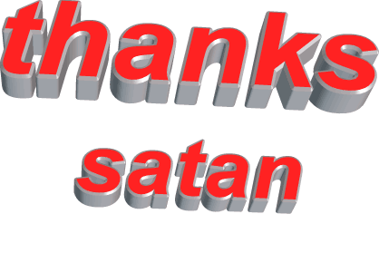Animated 3D text sticker displaying 'thanks satan' and 'Father Of Lies' with a metallic, red-faced effect.