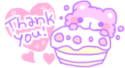 A charming pastel pink and purple animated sticker featuring a cute bear on a cake with 'Thank you!' text.