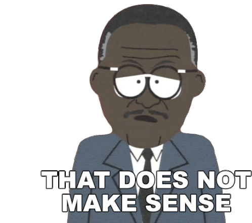 Johnnie Cochran from South Park expresses confusion, saying "That Does Not Make Sense" with a frustrated look.