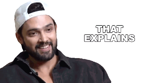 Parth Samthaan, wearing a white cap and black shirt, expresses "That Explains A Lot" in this animated sticker.