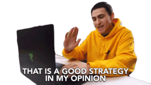 Jack Cole, a young man in a yellow hoodie, says "That is a good strategy in my opinion" while sitting at a laptop.