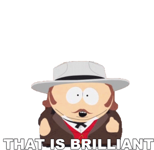 Eric Cartman from South Park, dressed as a gentleman, exclaims "THAT IS BRILLIANT" with an approving gesture.