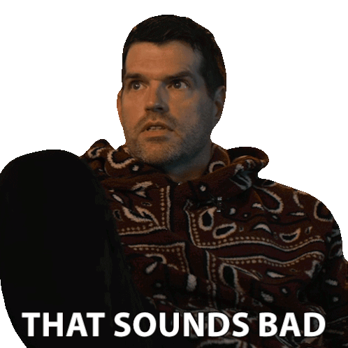 Sasha Roklov, portrayed by Timothy Simons, reacts with a concerned expression as the caption 'THAT SOUNDS BAD' appears.
