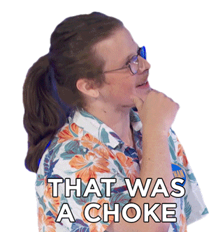 Johnathan from Family Feud Canada reacts with a thoughtful expression, mouthing "That Was A Choke" after a mistake.