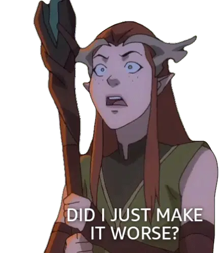 Keyleth from The Legend of Vox Machina expresses surprise and denies responsibility with "That Was Not My Fault."