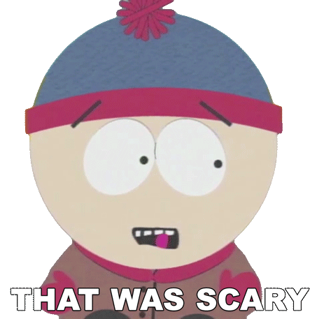 Stan Marsh from South Park reacts with wide eyes and a scared expression, exclaiming 'That Was Scary'.