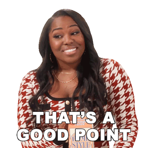 Harper Bettencourt, played by Laci Mosley, smiles and says "That's a good point" while holding a magazine.