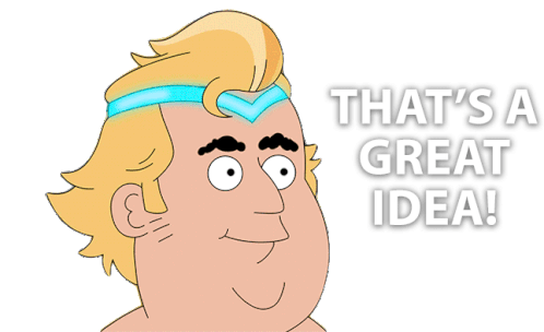 Fichael from Farzar enthusiastically exclaims "That's a great idea!" with a wide smile, showing approval and excitement.