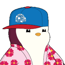 A Pudgy Penguin wearing a blue hat and flowered shirt says 'THAT'S BAIT' with a skeptical expression.