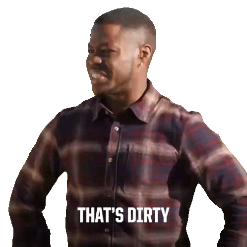 Brandon Gonez, wearing a plaid shirt, reacts with a 'That's Dirty' caption appearing on his chest.