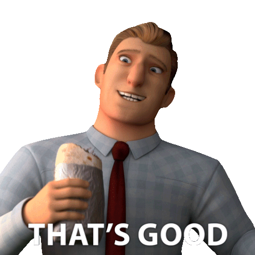 Karl Uhl from Trollhunters: Tales of Arcadia smiles and says 'THAT'S GOOD' while holding a burrito.