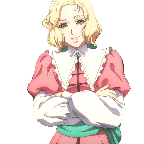 Maria Renard from Castlevania Nocturne shares a shy, amused laugh, eyes closed and arms crossed. A hilarious reaction.