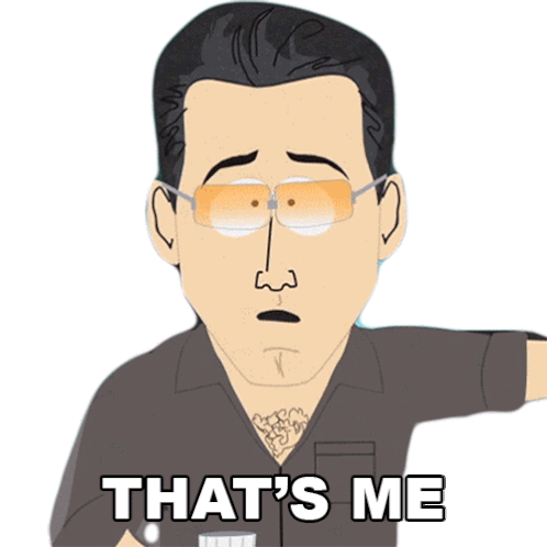Ben Affleck's South Park character exclaiming 'THAT'S ME' with his signature glasses and chest hair.
