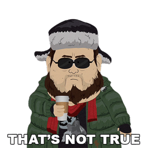 Dick Slapperman from South Park, holding coffee and declaring 'That's Not True'.