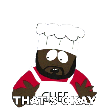 Jerome Chef Mcelroy from South Park reassures with a shrug and the phrase 'That's Okay.' A comforting and understanding reaction.