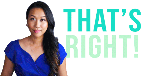 Stephanie Liu enthusiastically points and affirms with 'That's Right!', a perfect sticker for agreement and positive responses.